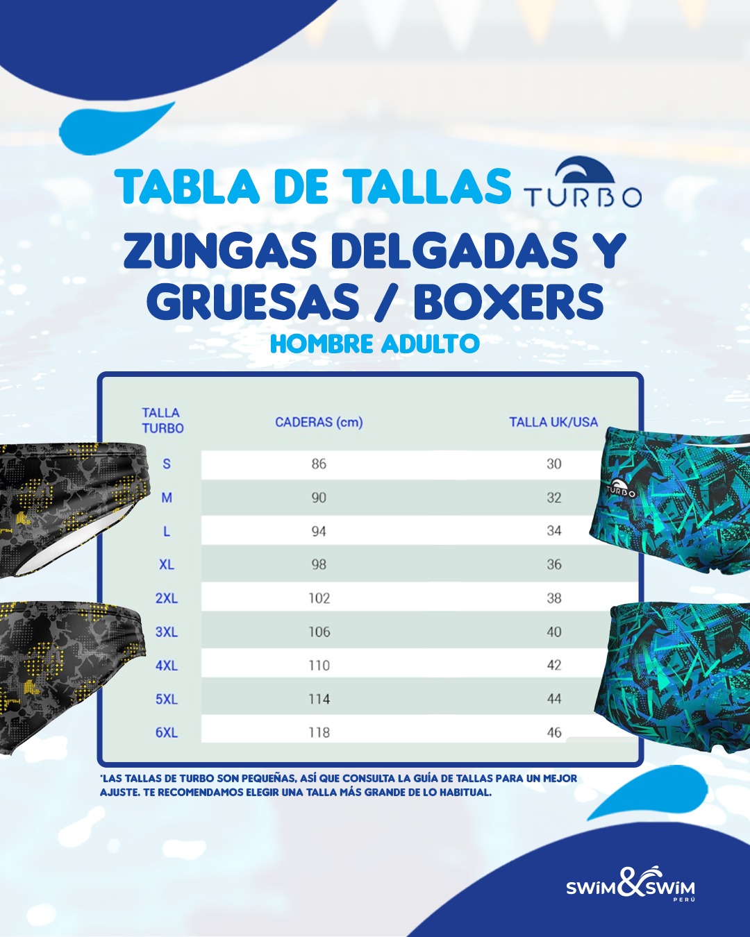 Las tallas de TURBO son pequeñas, así que consulta la guía de tallas para un mejor ajuste. Te recomendamos elegir una talla más grande de lo habitual.